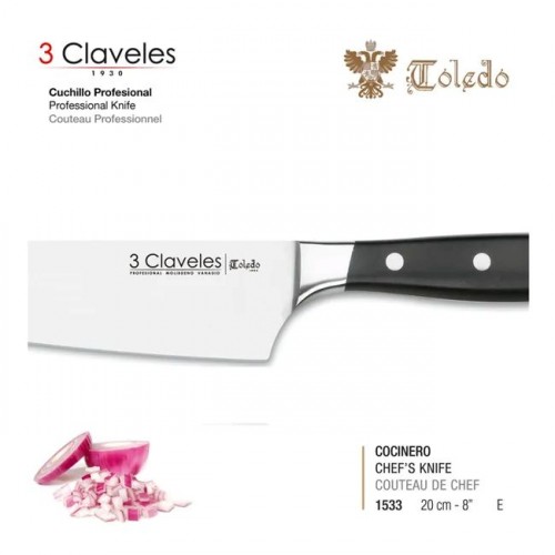 Cuchillo Cocinero forjado 20 centímetros,8" Colección Toledo de 3CLAVELES.