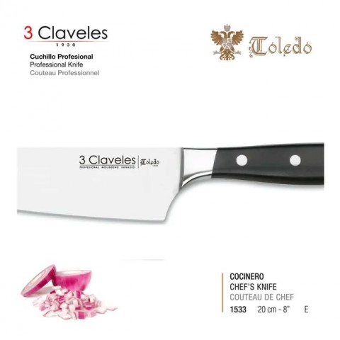 - Cuchillo Cocinero forjado 20 centímetros,8" Colección Toledo de 3CLAVELES.