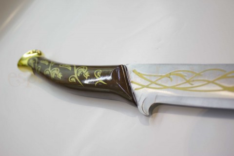 • Hoja de acero inoxidable grabada artesanalmente con motivos élficos.