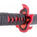 Mango: Encordado negro en polipiel e imitacion de raya en color rojo. Kashira en color gris.